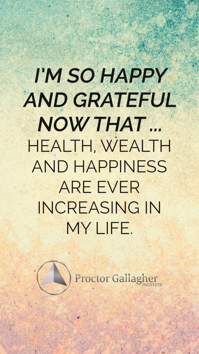 I’m so happy and grateful now that … health, wealth and happiness are ever increasing in my life.
