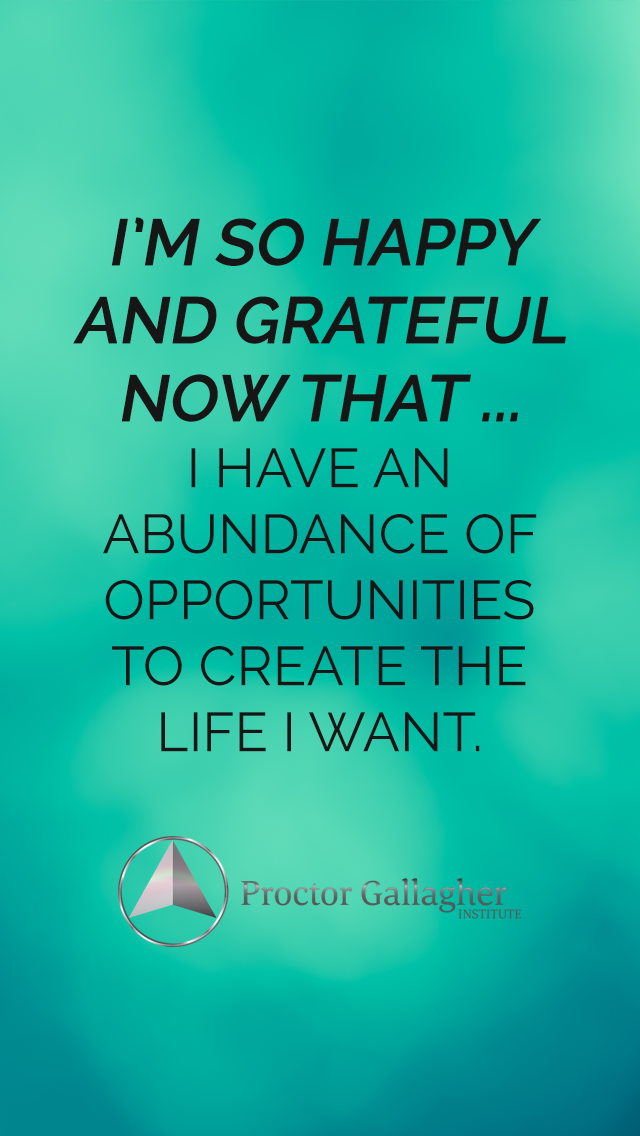I’m so happy and grateful now that … I have an abundance of opportunities to create the life I want.