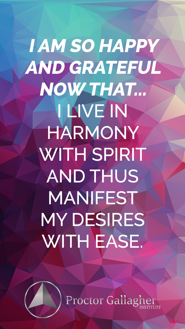 I am so happy and grateful now that… I live in harmony with spirit and thus manifest my desires with ease.