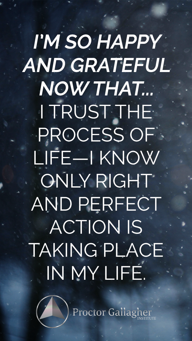 I am so happy and grateful now that… I trust the process of life—I know only right and perfect action is taking place in my life.