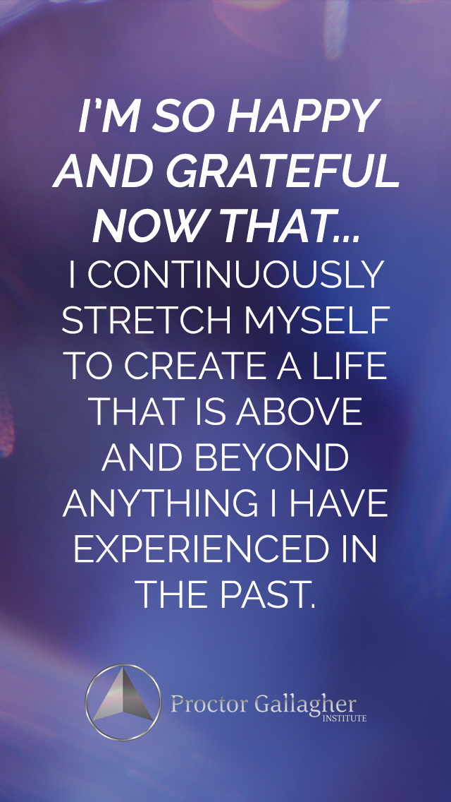 I am so happy and grateful now that… I continuously stretch myself to create a life that is above and beyond anything I have experienced in the past.