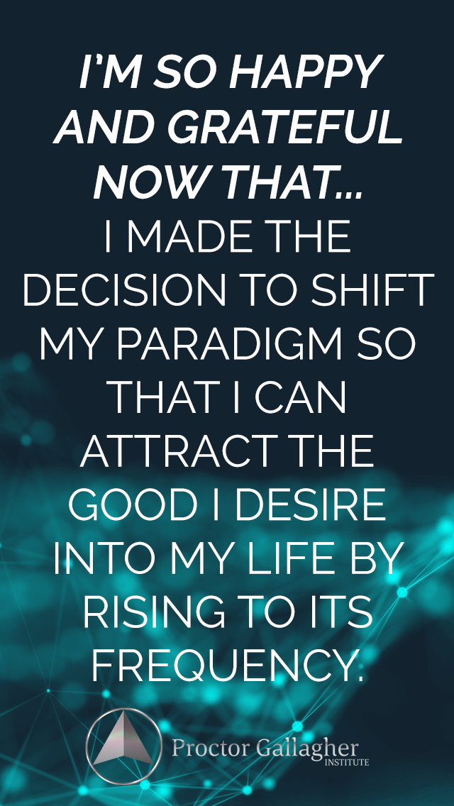 I am so happy and grateful now that… I made the decision to shift my paradigm so that I can attract the good I desire into my life by rising to its frequency.