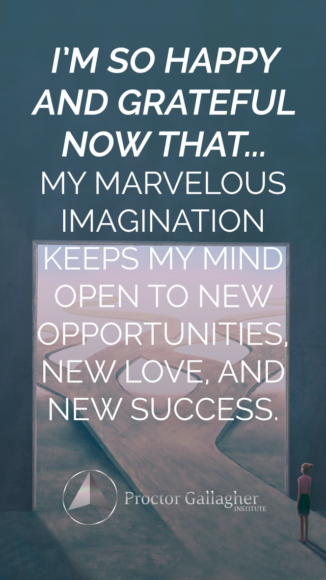 I am so happy and grateful now that… my marvelous imagination keeps my mind open to new opportunities, new love, and new success.