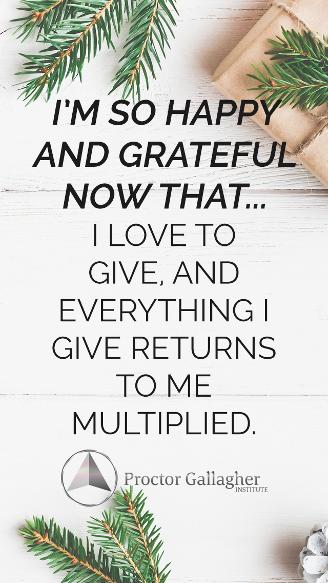 I am so happy and grateful now that… I love to give, and everything I give returns to me multiplied.