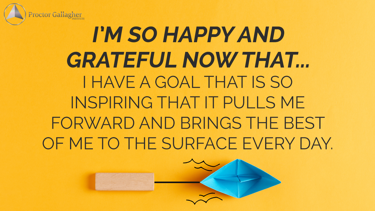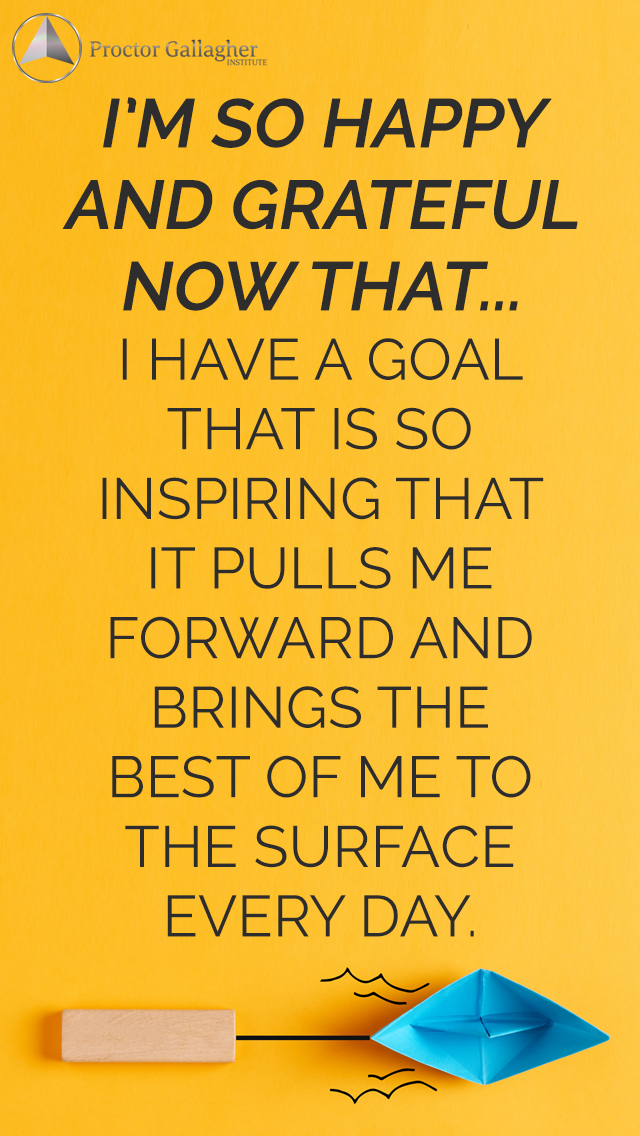 I am so happy and grateful now that… I have a goal that is so inspiring that it pulls me forward and brings the best of me to the surface every day.